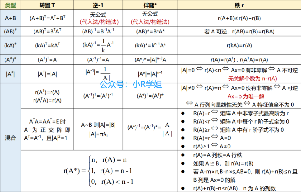 解题思路:对抽象型行列式,计算方法主要是利用行列式的性质,矩阵的性质,特征值及相似等。主要的公式有: