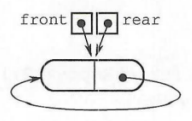 初始时,创建只有一个空闲结点的循环单链表,头指针front和尾指针rear均指向空闲结点。