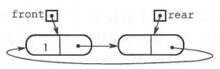 因此链式存储结构(两段式单向循环链表),队头指针为front,队尾指针为rear。