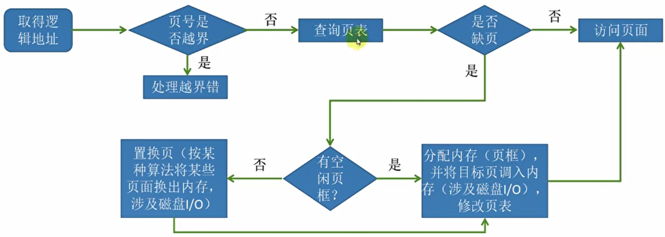 (2)页面替换算法:若要访问的页面不在内存中,且内存中没有空间(或者是第一题中【已分配的物理页框】已达到驻留集大小时),就需要从【内存】调出一页(送入【磁盘】的对换区);