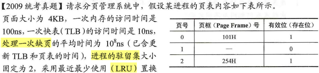 【1565H】P:1。10ns(TLB)+100ns(页表)+10^8ns(缺页中断处理)
