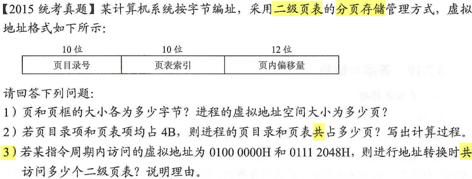 (1)本题初始情况是:TLB空,页表有3项(2项有效位为1即分配2个页框号给进程【该2页面在内存中】, 1项有效位为0即该页面在外存中);