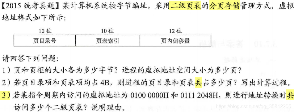 共访问一个二级页表,因为虚拟地址0100 0000H和0111 2048H的最高十位都是0000 0001 00即4(访问同一个二级页表)。