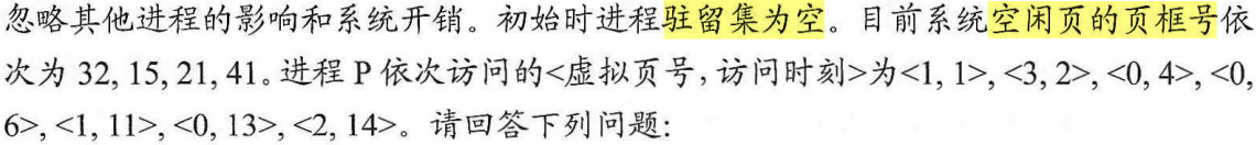 注意最后工作:因为驻留集中的32号、15号页框并没有在第二轮中被访问,所以要被回收到空闲页框链尾中(和空闲页框41号一起),