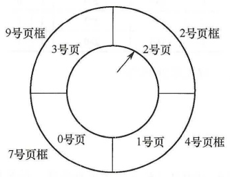 设搜索下一页的指针顺时针移动,当前指向2号页框(如下图)。