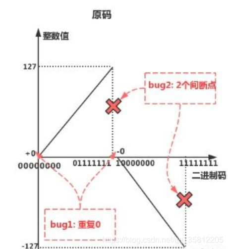 整数的反码可由原码得到,如果是正数,则反码与原码一样;如果是负数,则反码是对它的原码(符号位除外)各位取反而得到的。因此反码只是右半图上下翻转了,bug2中的间断点被修复了,即间断点从2个变成1个。