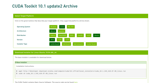 从https://developer.nvidia.com/cuda-toolkit-archive下载对应版本的cuda,选择18.04的版本。如下图: