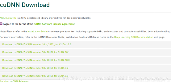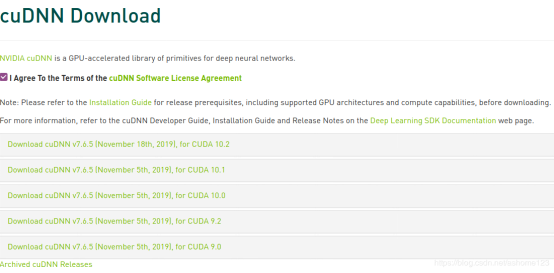 从https://developer.nvidia.com/cudnn下载相应版本的cudnn,需要登陆。