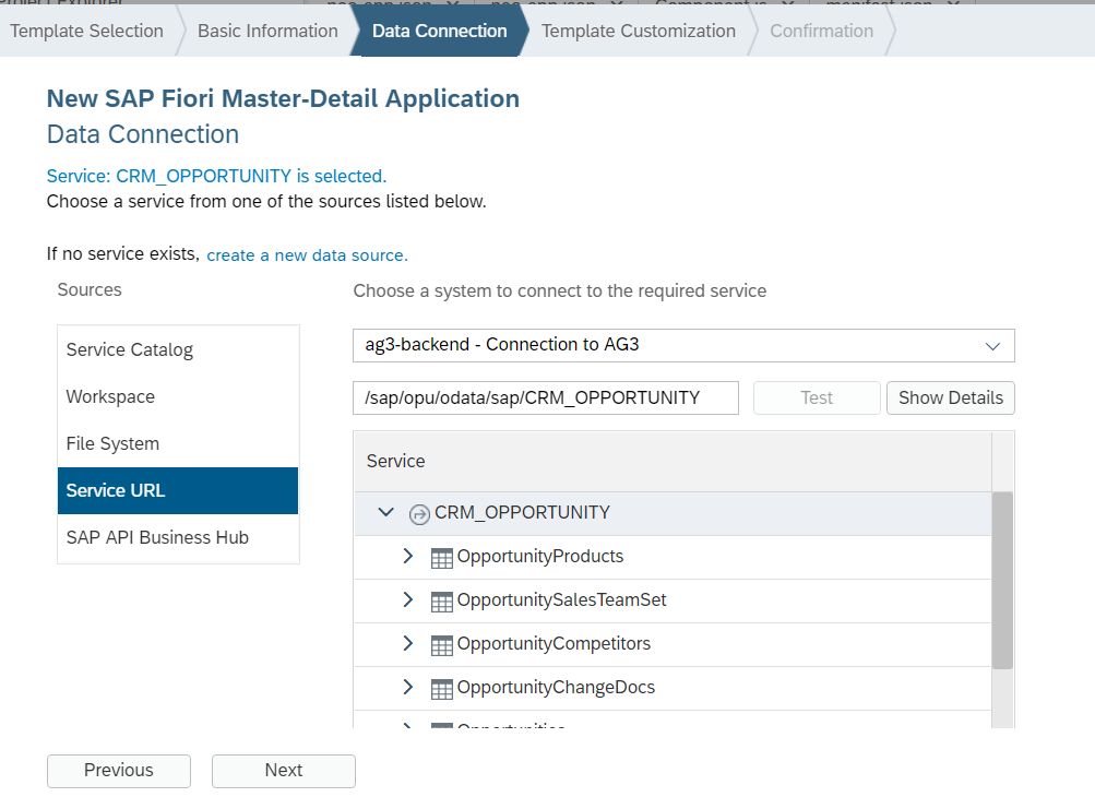 根据标准文档描述,拥有odata_abap属性的Destination指向的是一个gateway系统,将在SAP webIDE创建UI5应用的向导中的service catalog界面出现,如下图所示: