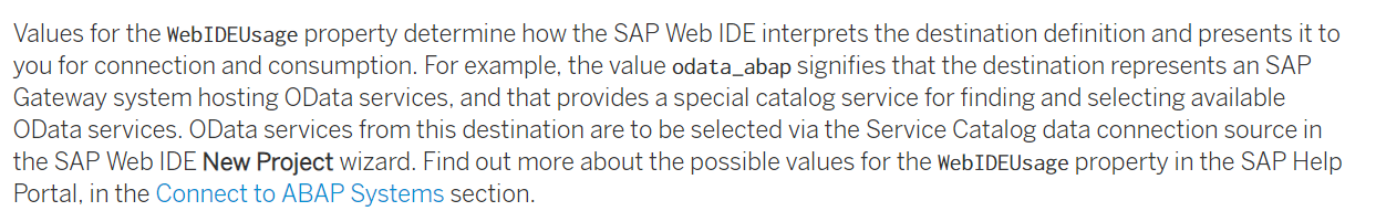 今天工作发现,SAP Cloud Platform上创建Destination维护的WebIDEUsage属性很有讲究: