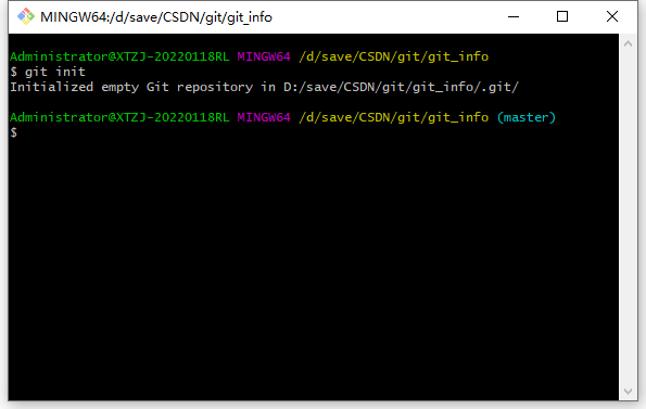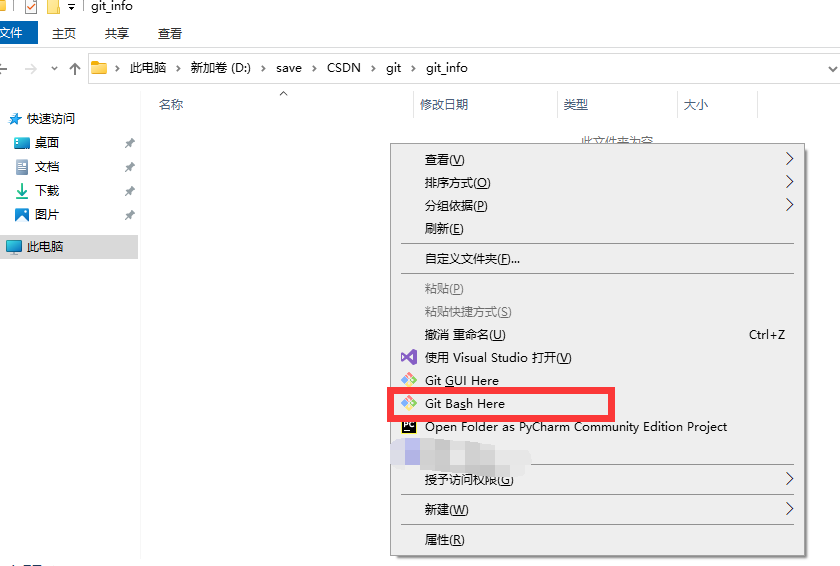 找个或创建个空文件夹,鼠标右键,点击【Git Bash Here】