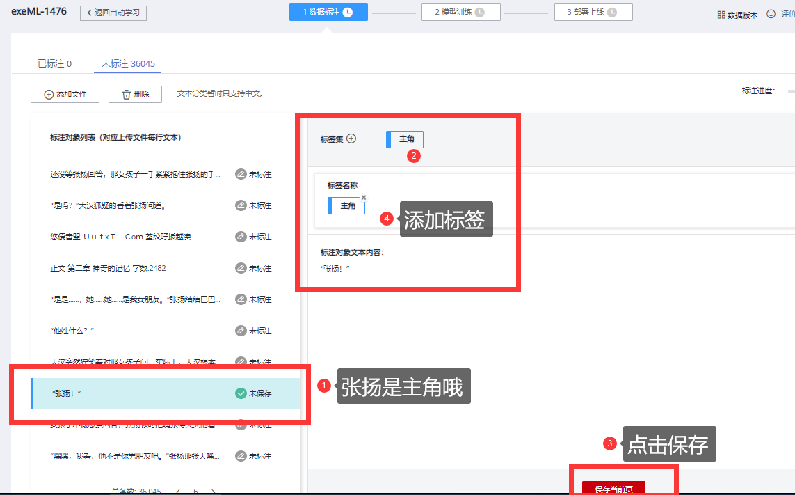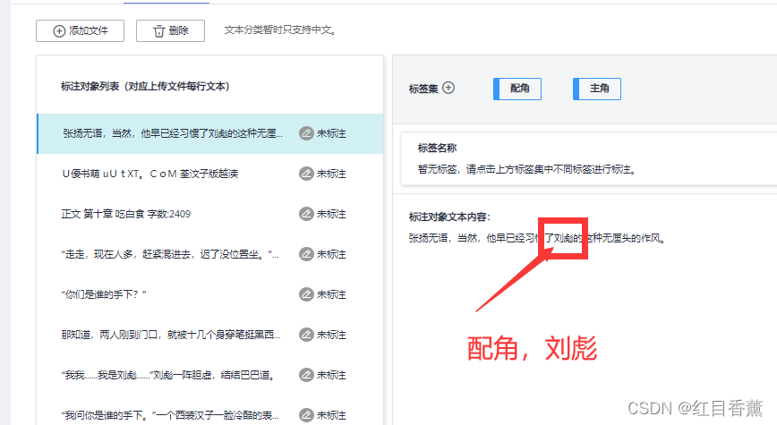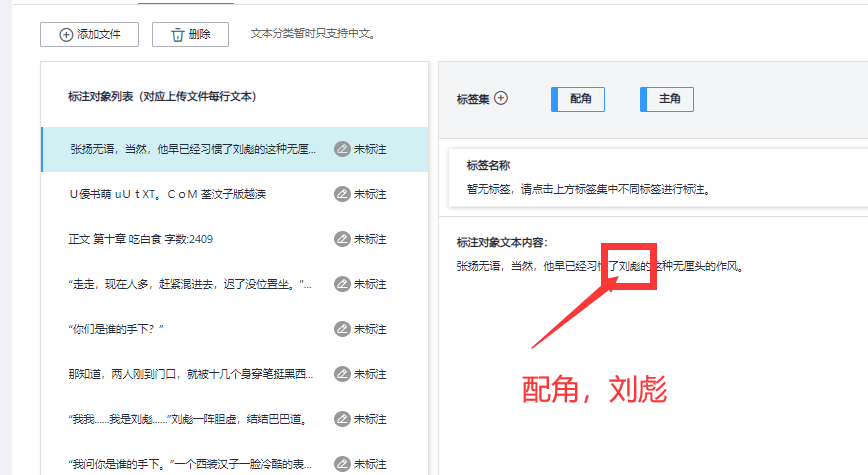 只要是有【主角】的句子咱们都标注上,多点几个。