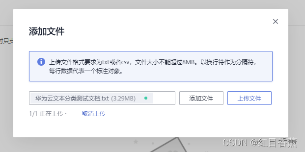 【摘要】 目录创建服务上传测试文档添加标签选择训练内容开始训练部署使用效果AI Gallery-开发者社区ModelArts-自动学习——智能文本分类创建服务填写必填项创建桶和文件夹可以参考【华为云ModelArts完整流程引导——贴心的细致-帮你1小时完成整个训练过程_红目香薰-CSDN博客】 上传测试文档添加分析文件的时候要注意以下文件类型。那么想去弄个小说试试。 我这里准备了个文档啊,...