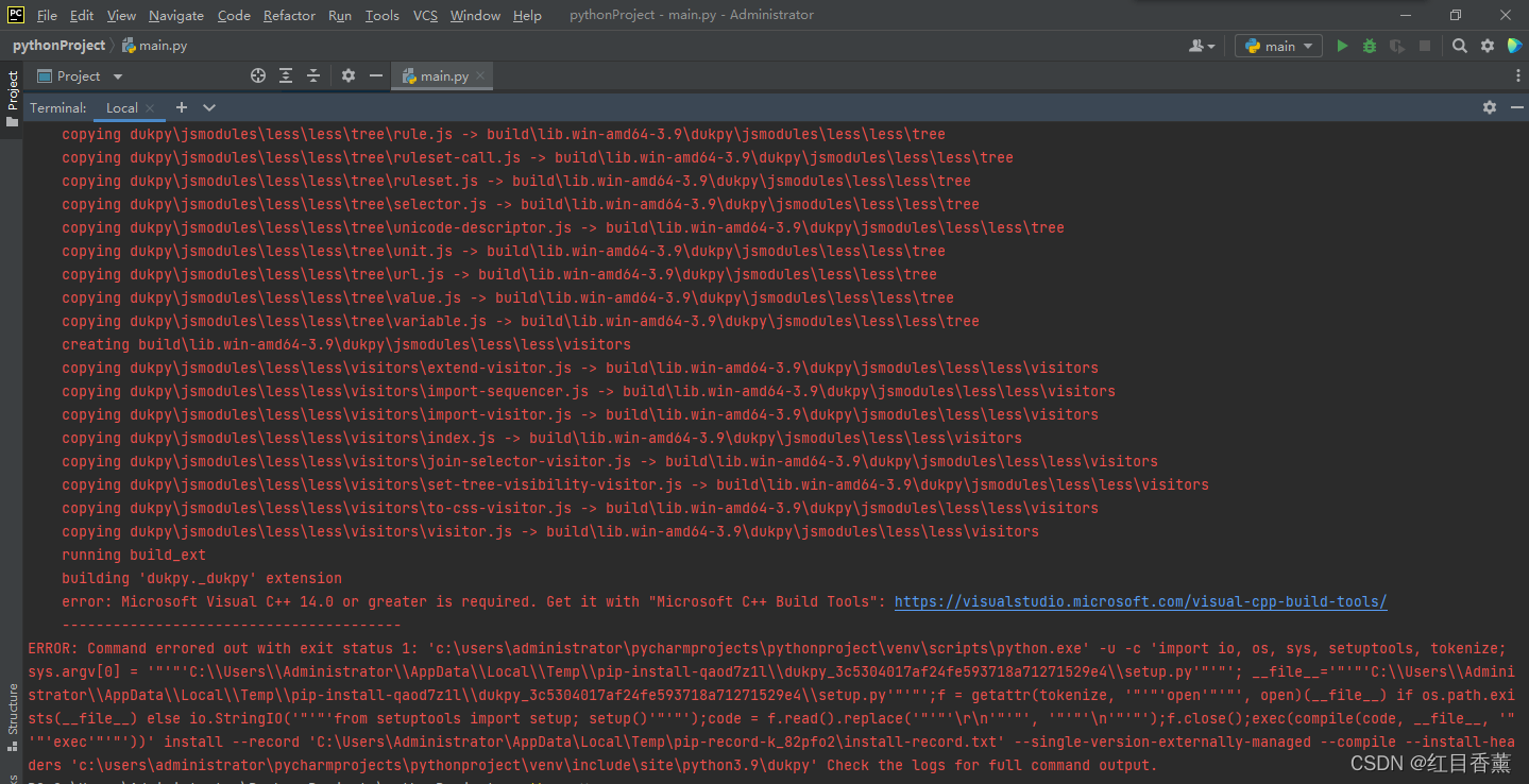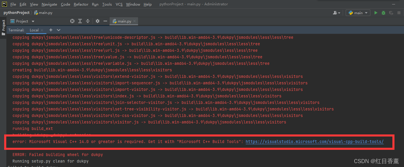 问题1: 【 error: Microsoft Visual C++ 14.0 or greater is required. Get it with "Microsoft C++ Build Tools":】