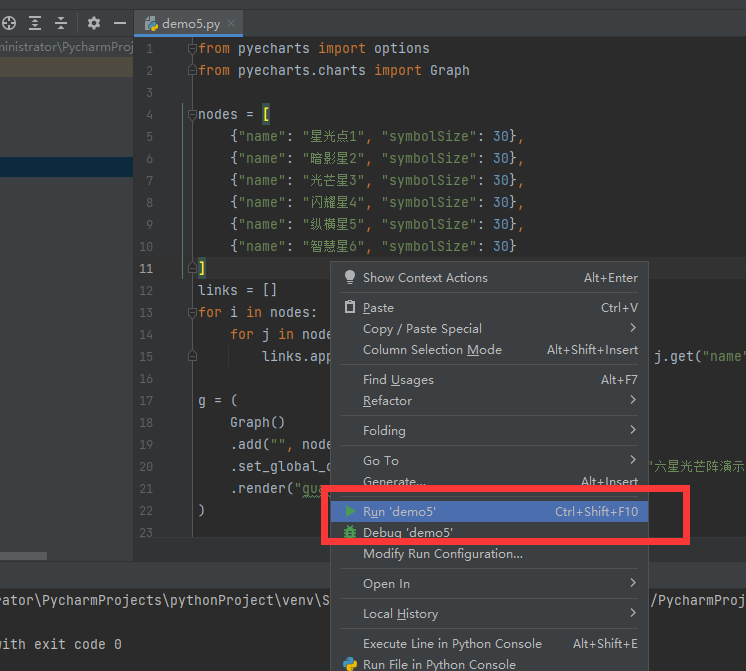【摘要】 需要安装pyechartspip install pyecharts -U创建【demo5.py】测试类输入以下编码:from pyecharts import optionsfrom pyecharts.charts import Graphnodes = [ {"name": "星光点1", "symbolSize": 30}, {"name": "暗影星2", "...
