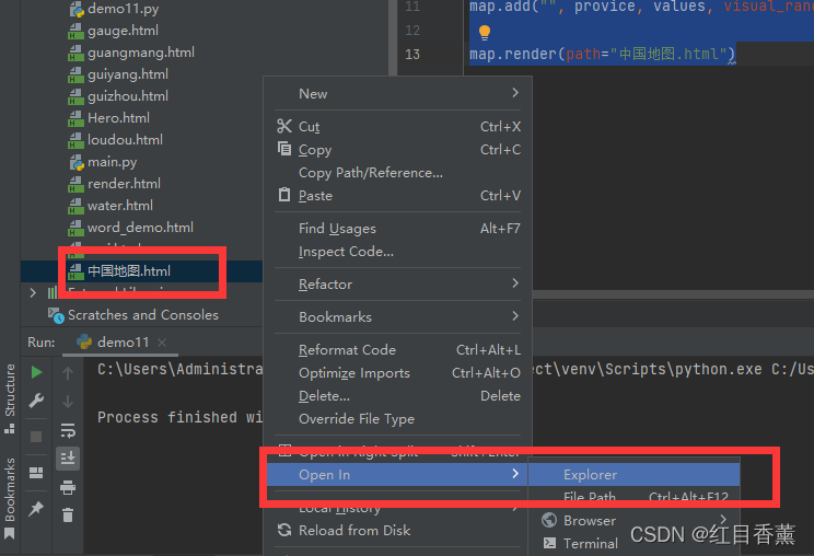 【摘要】 上文继续创建【demo11.py】输入以下编码from pyecharts import Mapprovince_distribution = {'河南': 45.23, '北京': 37.56, '河北': 21, '辽宁': 12, '江西': 6, '上海': 20, '安徽': 10, '江苏': 16, '湖南': 9,'浙江': 13, '海南': 2, '广东': 22, '...