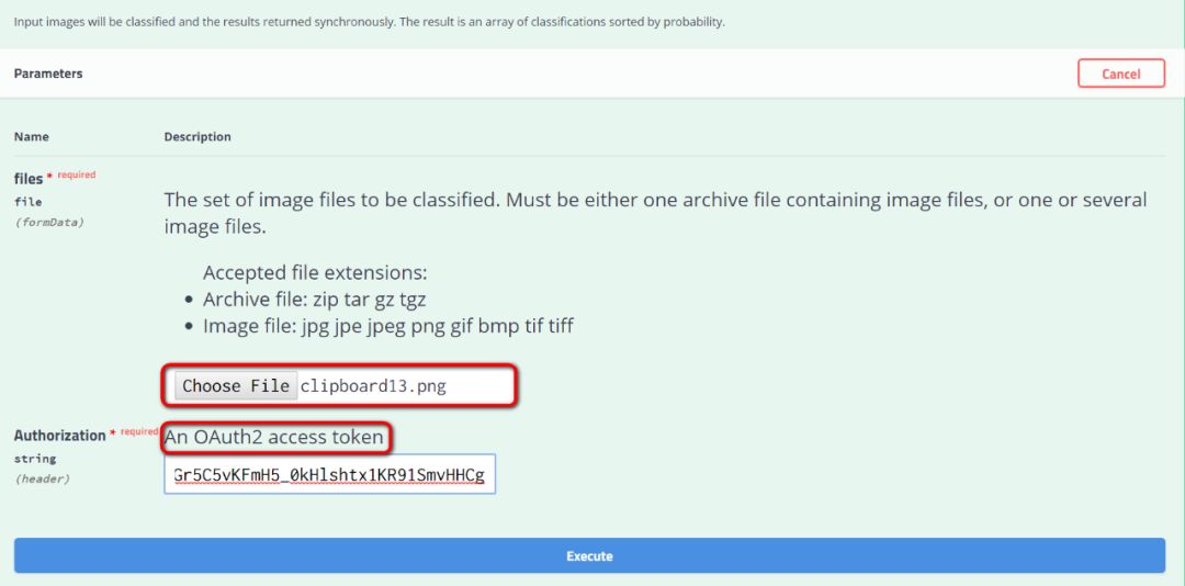 再将之前通过clientid和client secret换取的access token填到控制台对应字段里,点击execute: