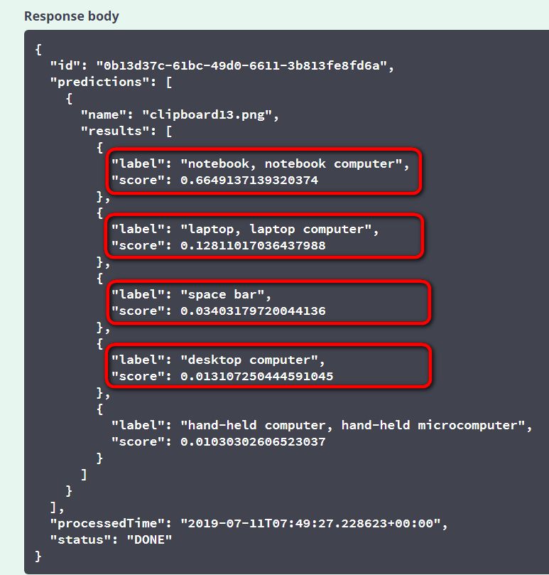 之前创建service key时,我们已经从创建结果里获得了基于产品图片识别类别的API url: