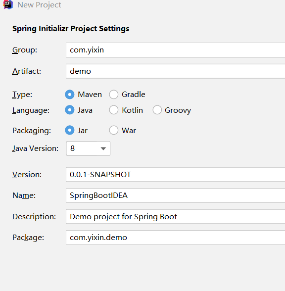 (2)填写要创建项目的基本信息