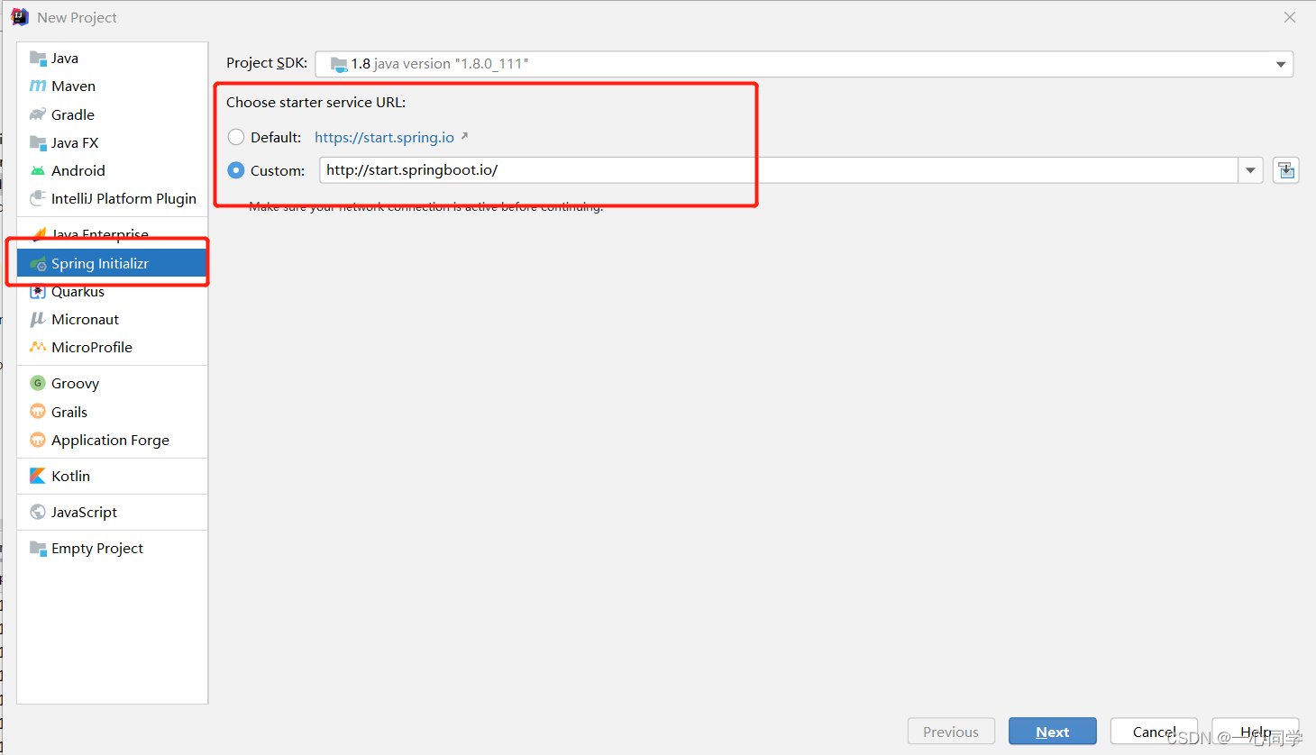 (2)选择spring initalizr , 其默认就是去官网的快速构建工具那里实现的