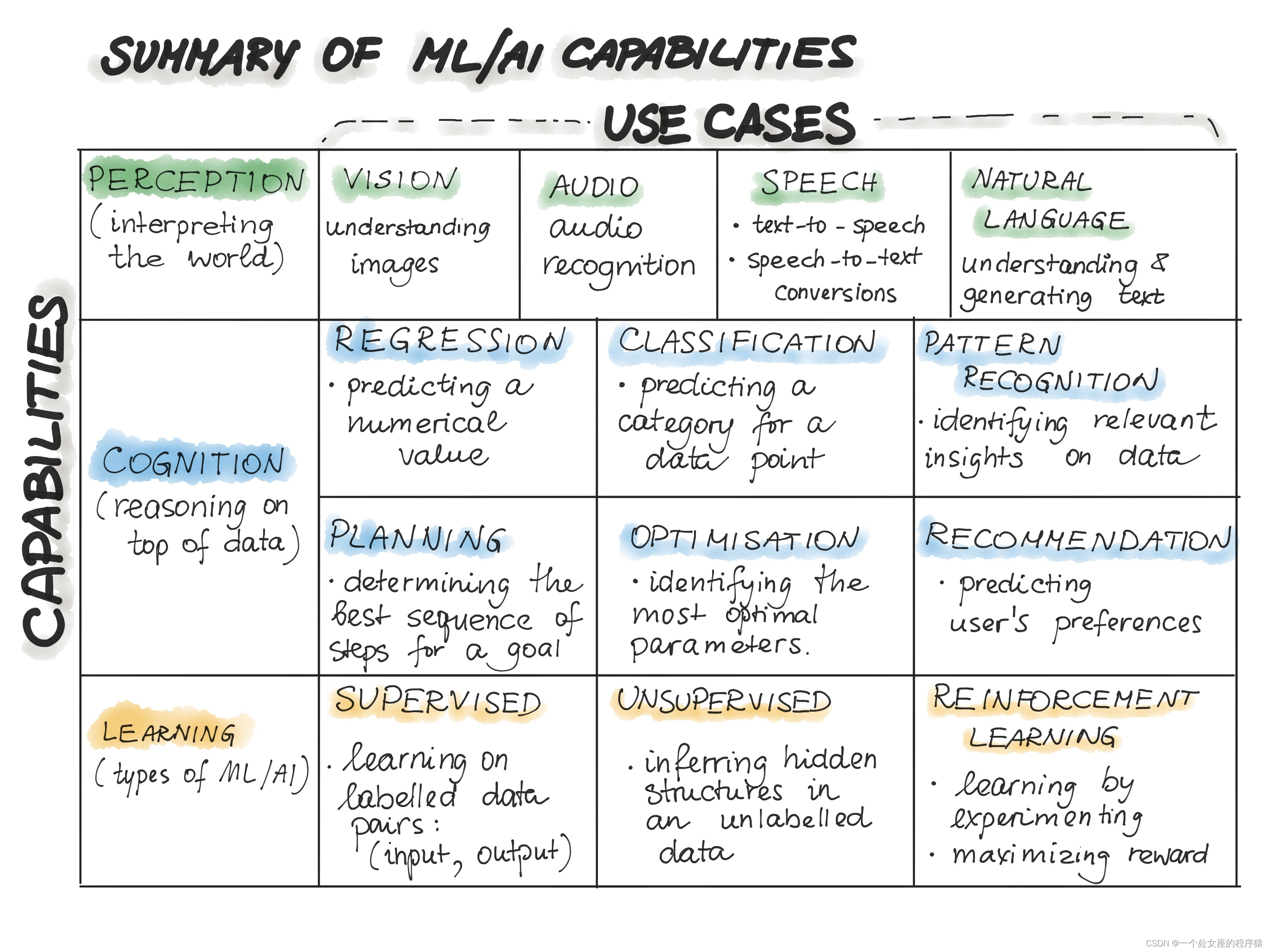 在下表中,我们总结了ML/AI的能力: