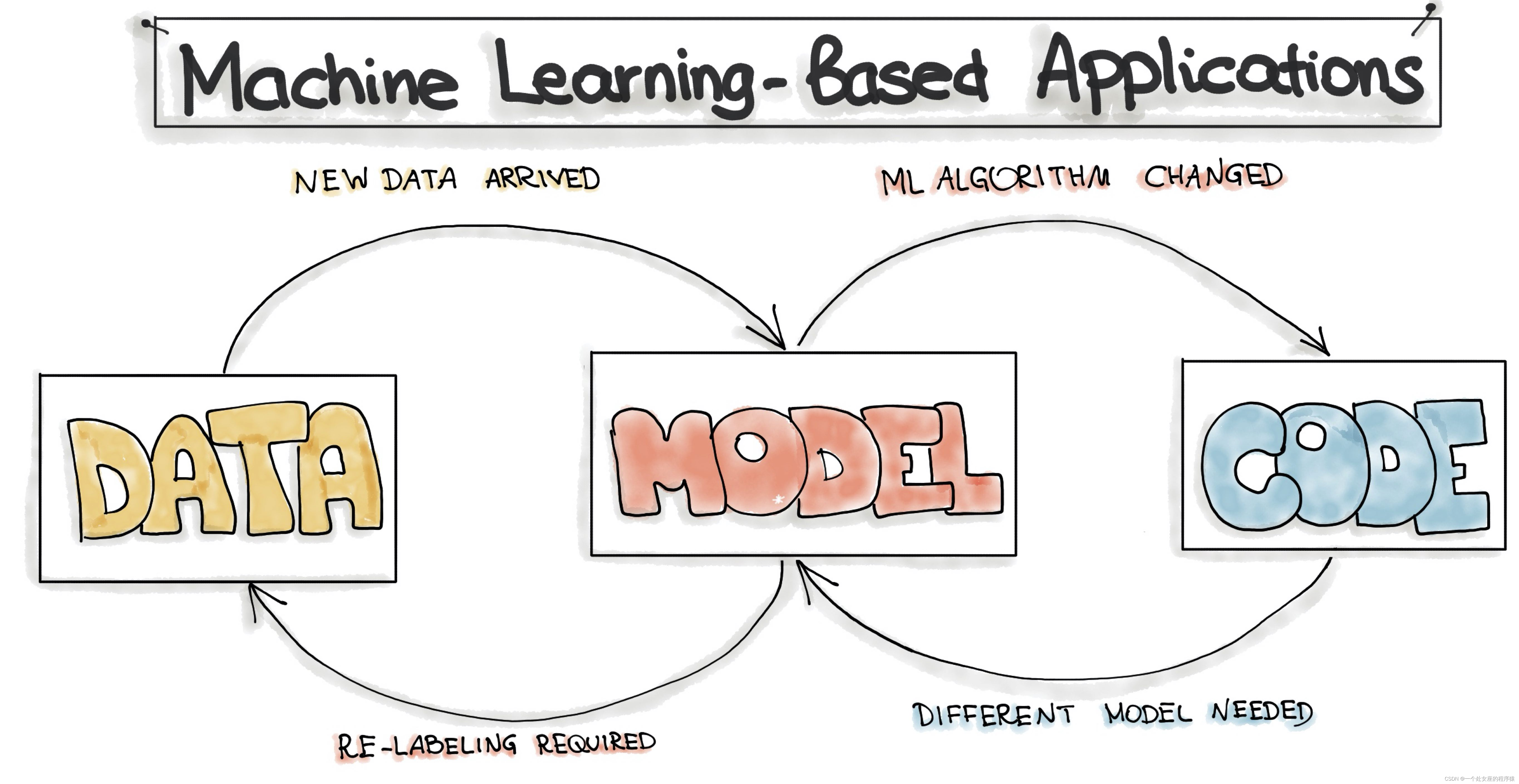 - (3)、在ML项目的某些阶段,我们可能会回到过程中,或者收集更多的数据,或者收集不同的数据并重新标记训练数据。这应该会触发ML模型的重新训练。