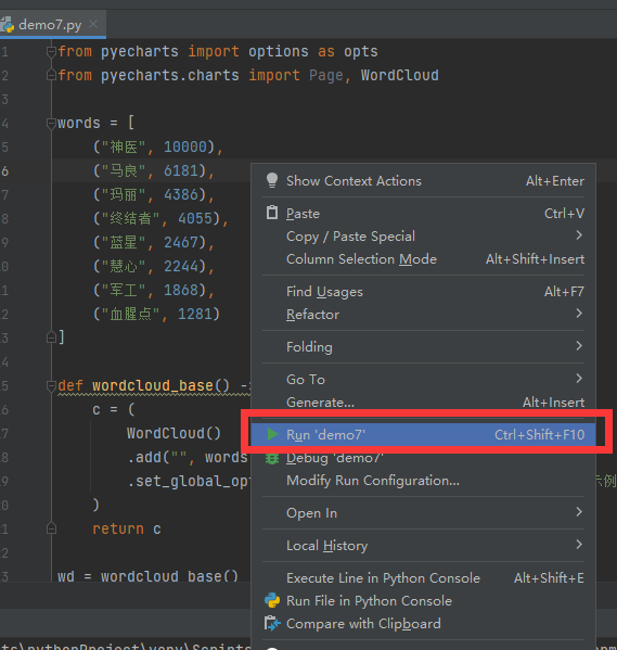 from pyecharts import options as optsfrom pyecharts.charts import Page, WordCloud words = [ ("神...