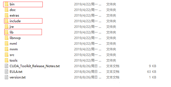 将CUDA\bin、CUDA\include、CUDA\lib中的内容拷贝到相应的C:\Program Files\NVIDIA GPU Computing Toolkit\CUDA\v10.0文