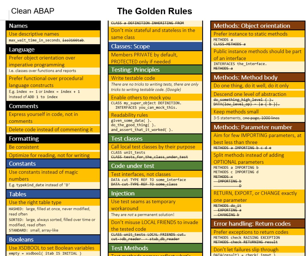 而CleanABAPTheGoldenRules这个文件,包含的就是SAP推荐的关于ABAP编程方方面面的最佳准则: