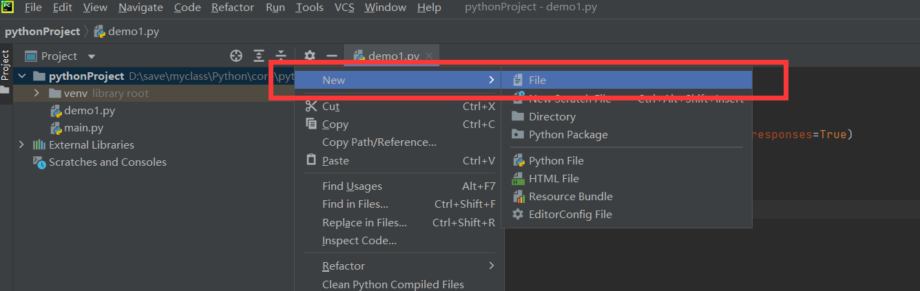 在项目上点击【鼠标右键】,依次选择【New】与【File】