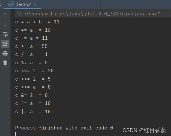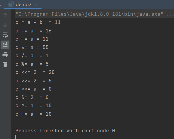 | += | 相加后再赋值,将左右两边的操作数相加后再赋值给左边的操作数。 | C += A 相当于 C = C + A |