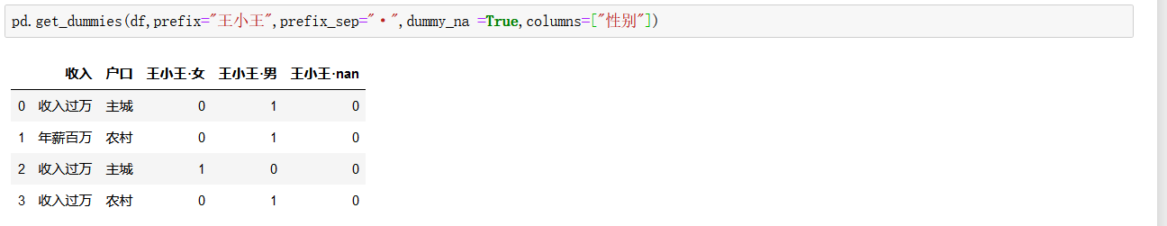 dummy_na : bool,默认为False如果忽略False NaN,则添加一列以指示NaN。