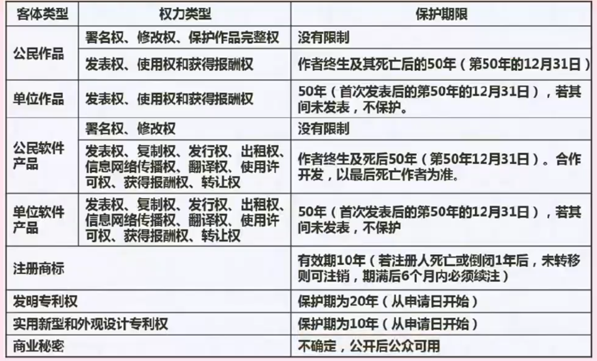 - 商业秘密:无固定的保密时间,一般由企业自行规定。且不能延长。