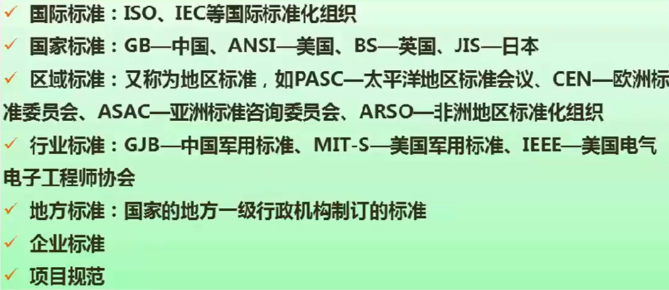 - 我国标准代号及编号:强制性国家标准代号为GB,推荐性国家标准代号为GB「,指导性国家标准代号为GB/z,国家实物标准代号GSB。