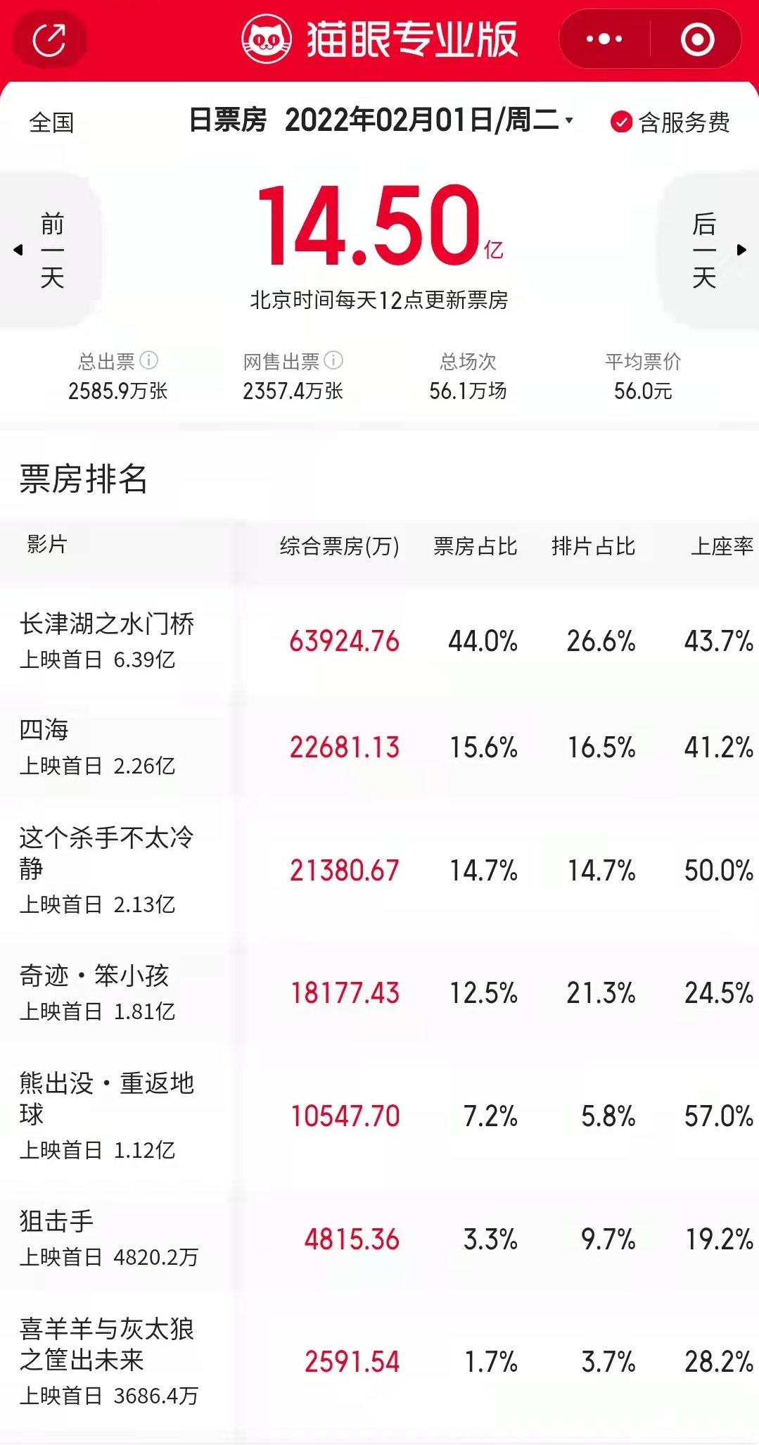 大年初一上映当天,从票房数据来看,《长津湖之水门桥》一马当先...