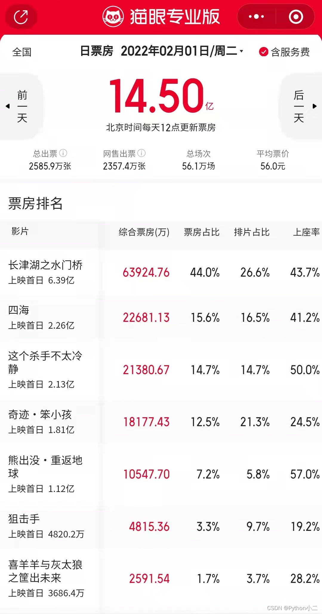 2022春节贺岁档电影开分,水门桥不理想,四海崩了 | 用Python一探究竟