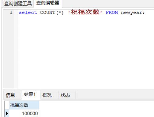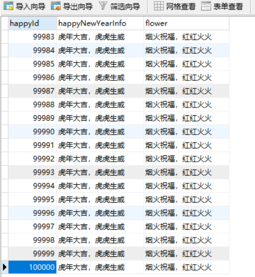 十万次的sql注定要使用存储过程,那么,咱们想办法要表达十万次的祝福与灿烂的烟花要怎么办呢?用文字表示呗。接下来我把语句都给了,挨个执行就是,送上十万次祝福啊。
