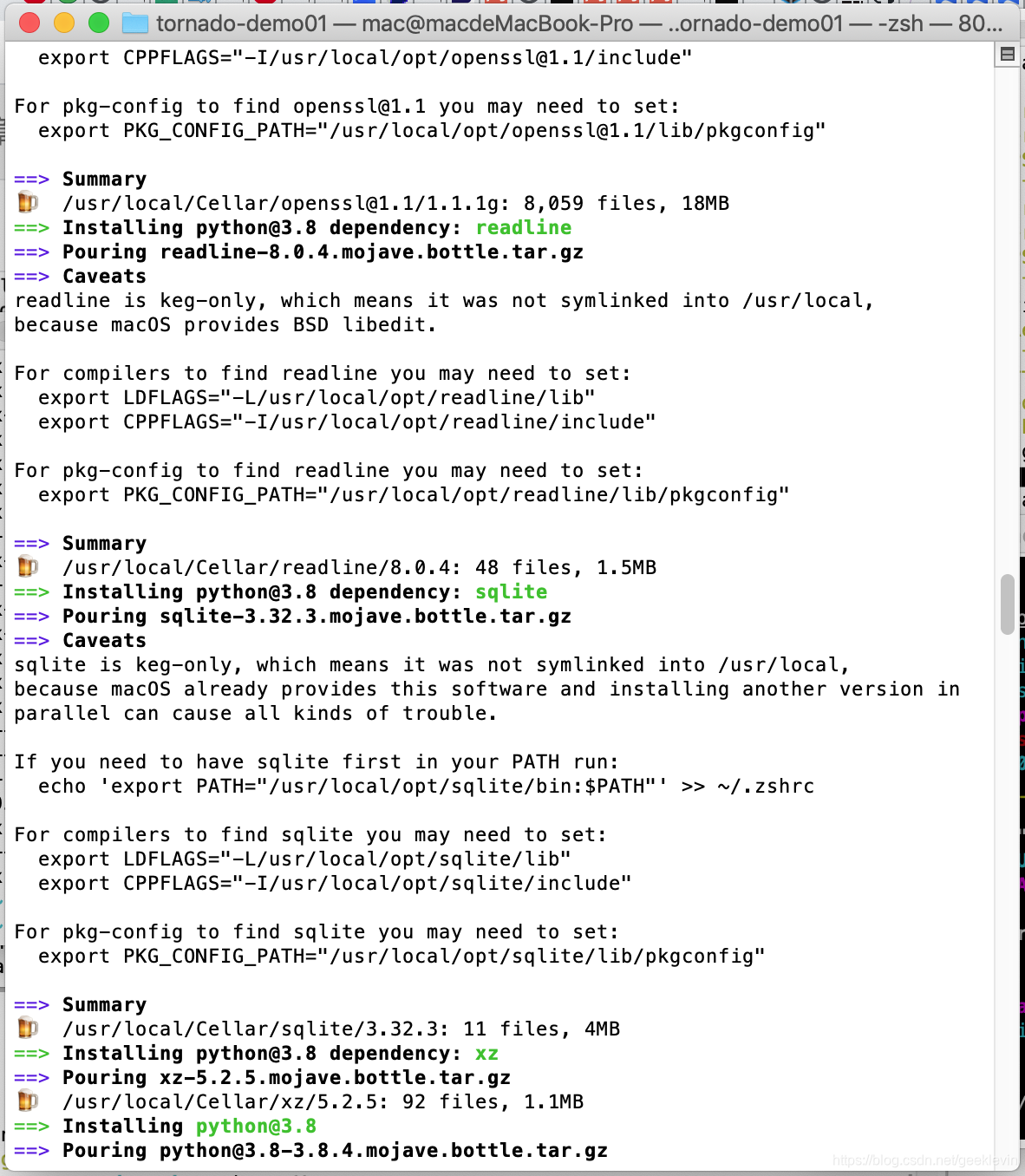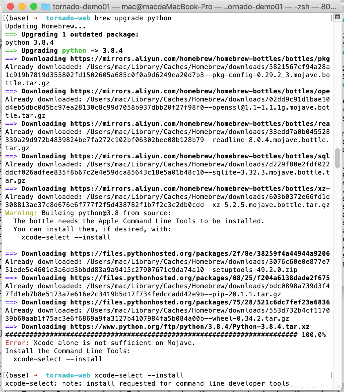 主要是brew安装新版python过程需要一些xcode的依赖。