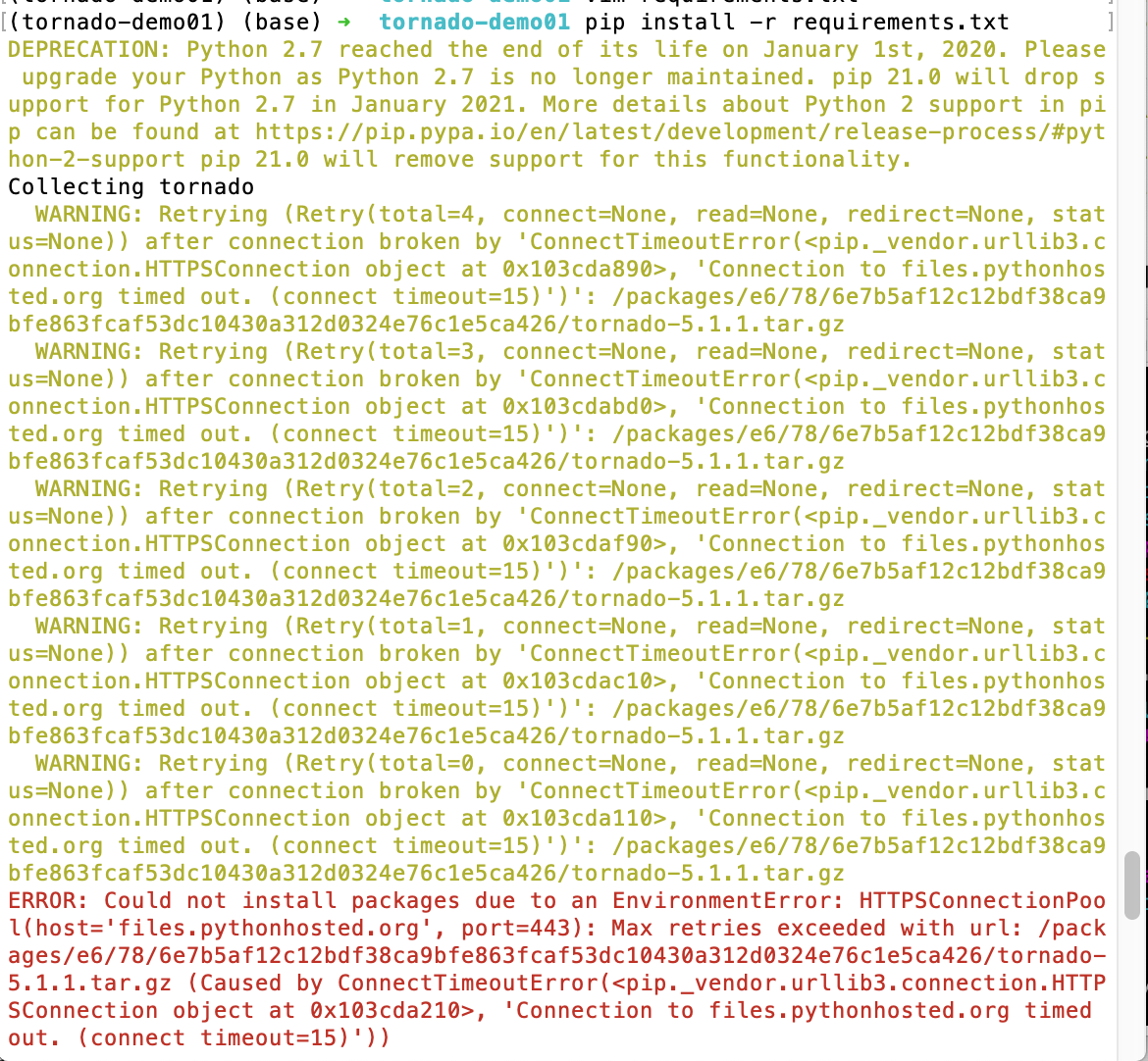 类似的错误:ERROR: Could not install packages due to an EnvironmentError: HTTPSConnectionPool(host='files.pythonhosted.org', port=443)
