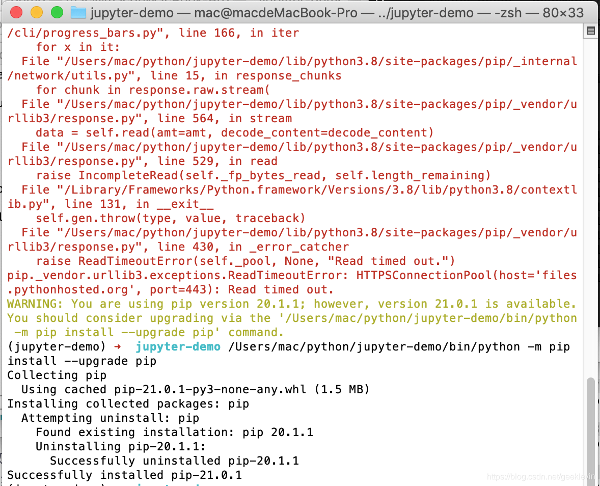 强烈建议升级, 否则有些项目使用pip命令会出现“socket.timeout: The read operation timed out” 这样的错误。