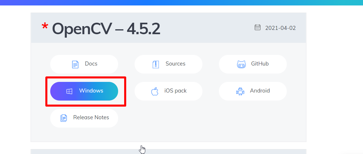 到官网进行下载,网址: https://opencv.org,单击Library菜单下面的Release。