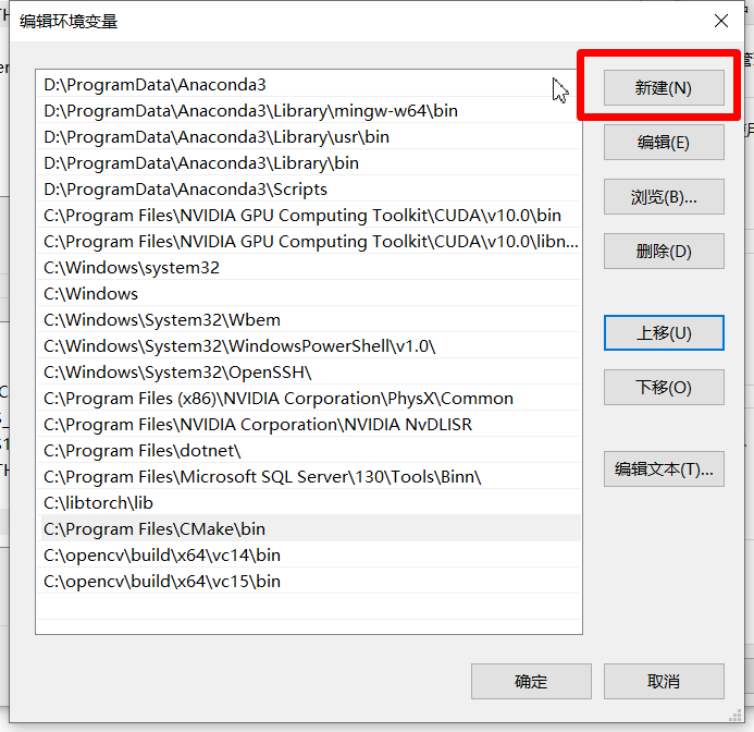 点击新建,复制opencv的安装目录下的bin目录–>添加到path变量中
