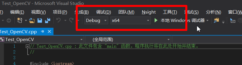 1.1、在vs2017中新建一个控制台项目(此处我建立的项目名为Test_OpenCV。)新建后更改为X64,默认是x86的。