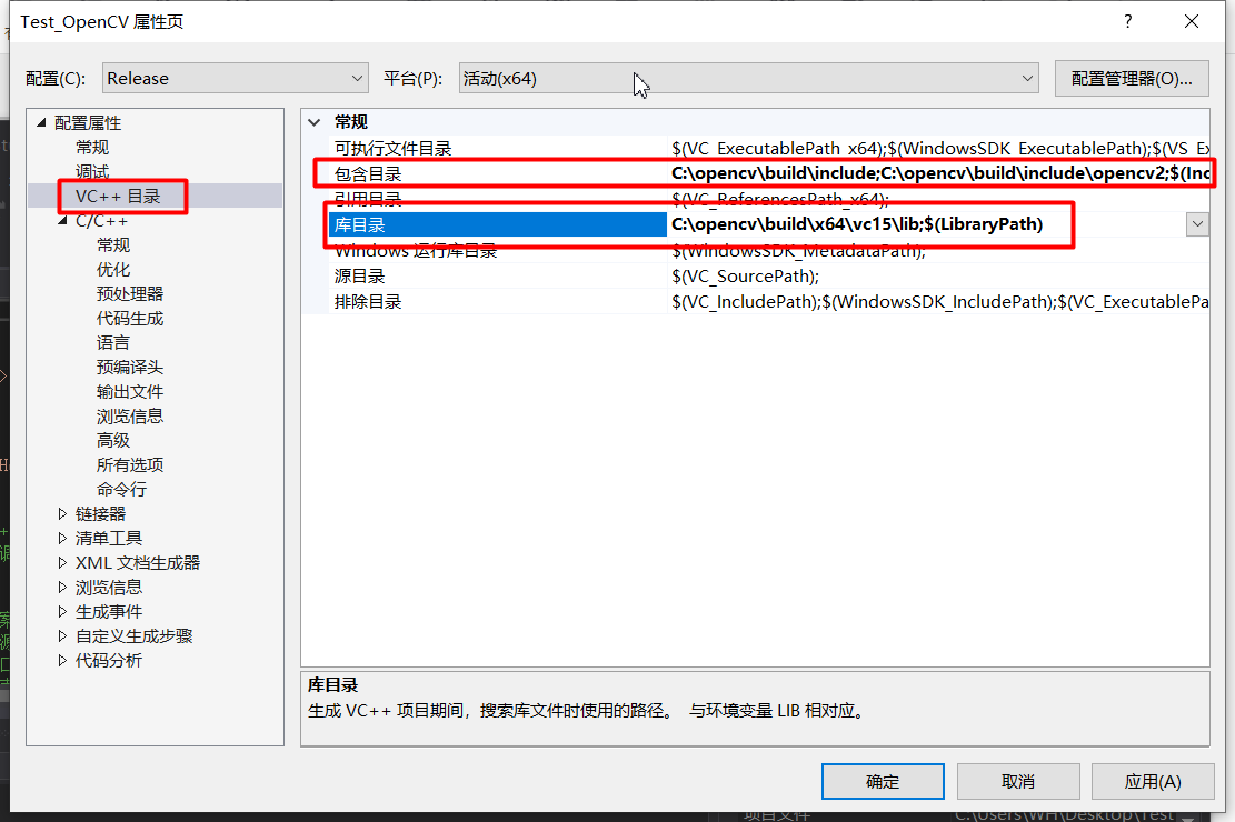 可以看到和步骤“配置OpenCV”完全相同的配置窗口,继续执行步骤1.3-1.4,完成后可以在Debug_x64 上点击右键选择保存。