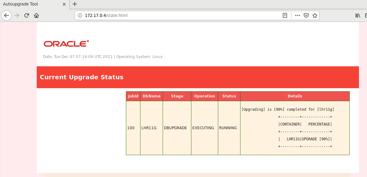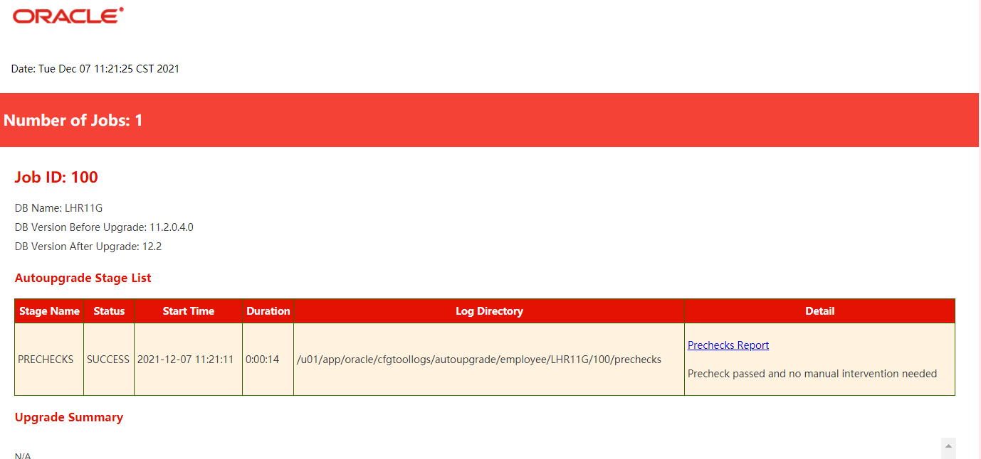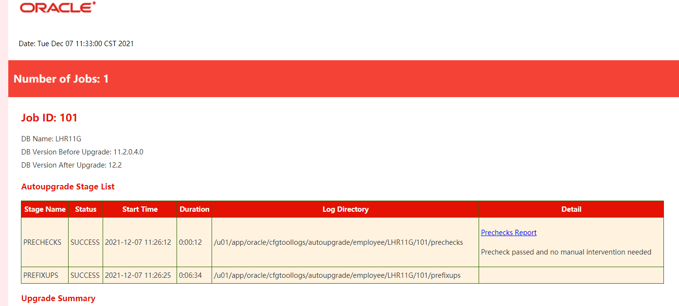 Upgrade Summary: /u01/app/oracle/cfgtoollogs/autoupgrade/employee/LHR11G/100/dbupgrade/upg_summary.log