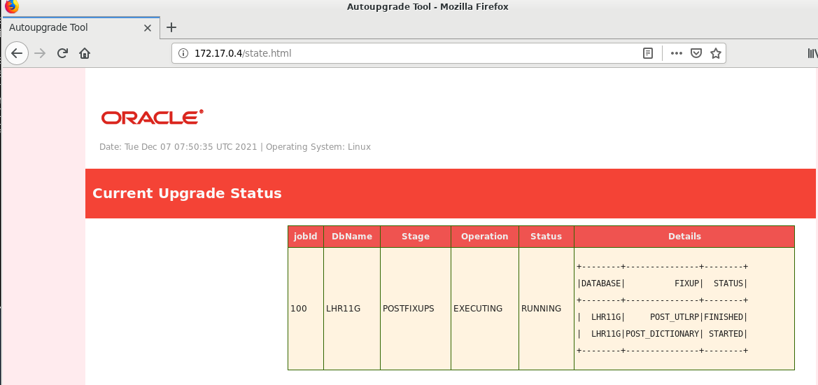 Oracle Database 12.2 Post-Upgrade Status Tool 12-07-2021 23:06:30