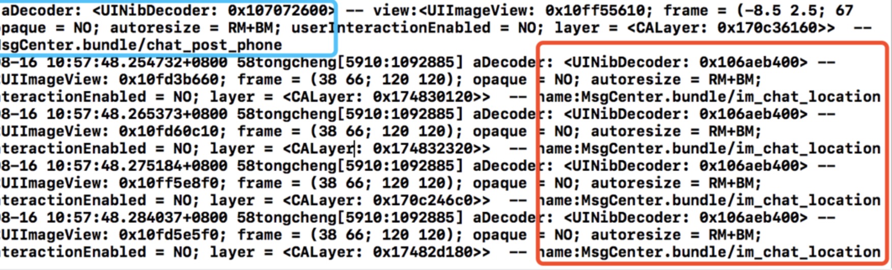 - 看到这里似乎是没有什么问题,但是忽略了一个很严重的问题 aDecoder 对象和 UIImageView 类型的对象是一一对应的吗?一个 imageView 它的 aDecoder 是它唯一拥有的吗?带着这个问题,先来看下打印信息: