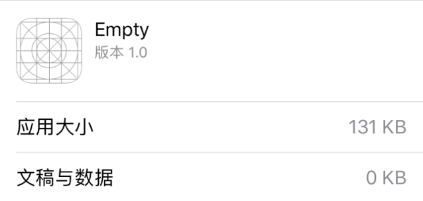 - 下面来证实:首先创建空应用,其大小在 iPhone7 上为 131KB ,引入一张 3KB 的图片前后对比如下: