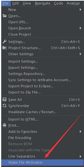 文件主动或者被动被锁定,选中相应文件,点击“File”选项,“Make File Writable”处理,即可。