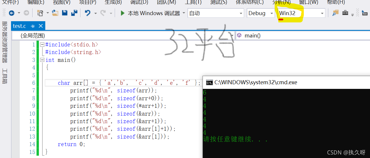 繁的 一般会出现一个字符数组然后呢,给出sizeof和strlen求数组长度,考点在于\0是计算到了,